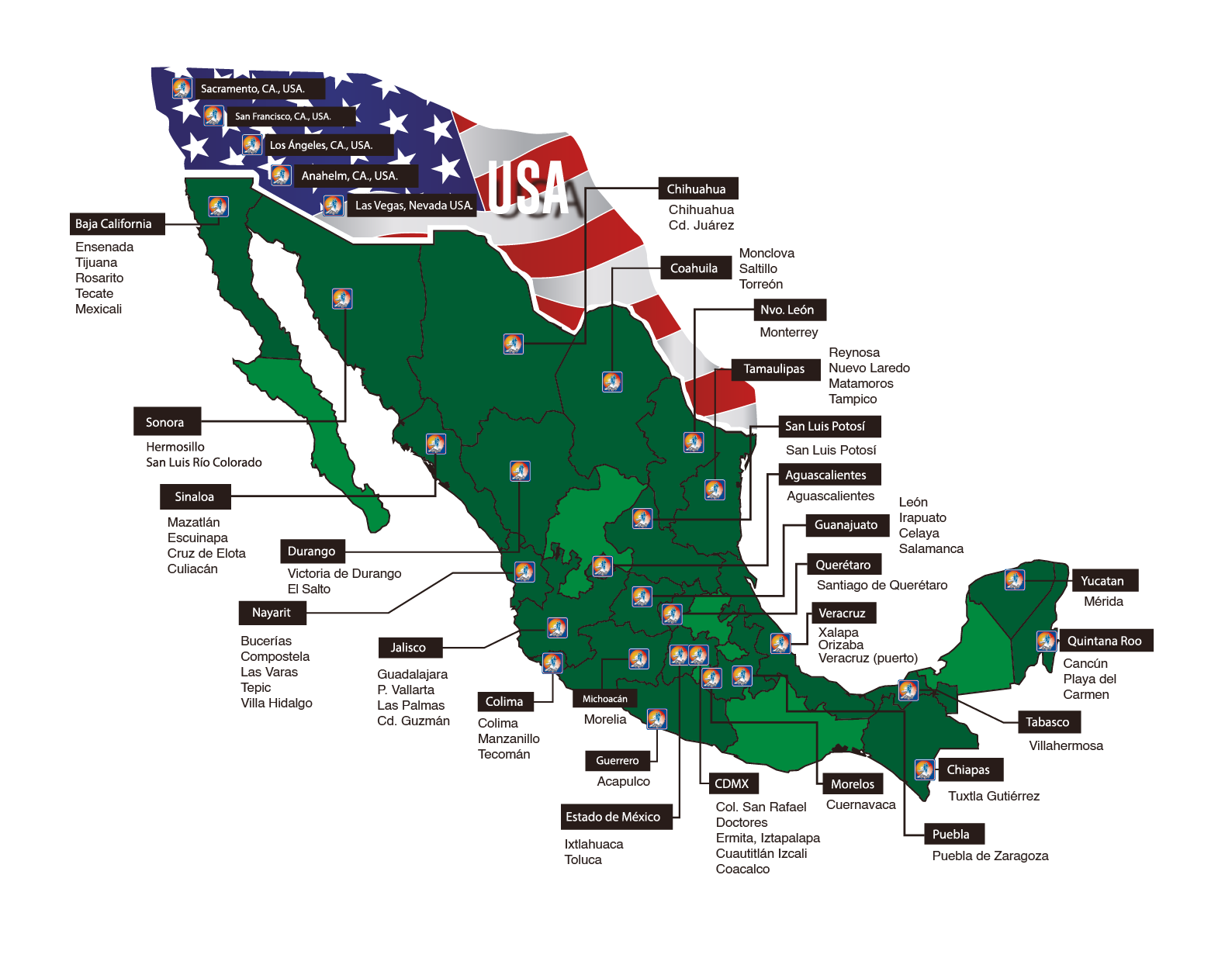 Contamos con cobertura en más de 50 ciudades de México y presencia USA. Con PABS estarás protegido en todo momento y en todo lugar.